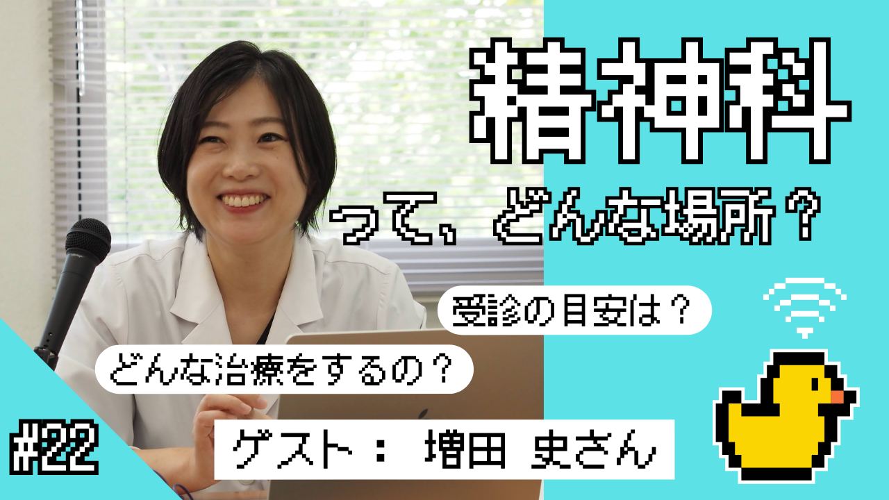 第22回は、ゲストに精神科医で医学博士の増田史先生をお迎えしております。今回は、精神科のお仕事についてお聞きしていきます。